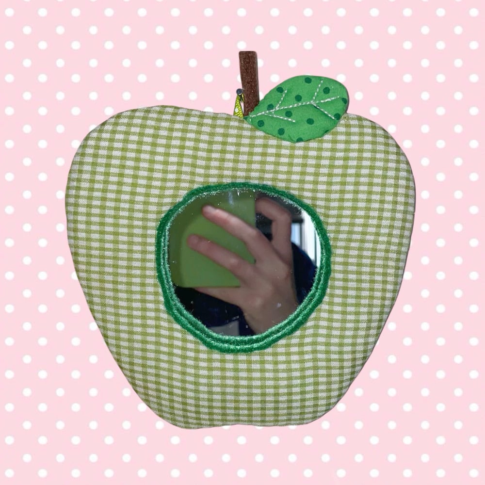 you may not get the mirror pictured, these are handmade so there may be little differences between each one please keep that in mind. each mirror is about 6x6 inches (not including stem) and has a loop on the back to hang it from!