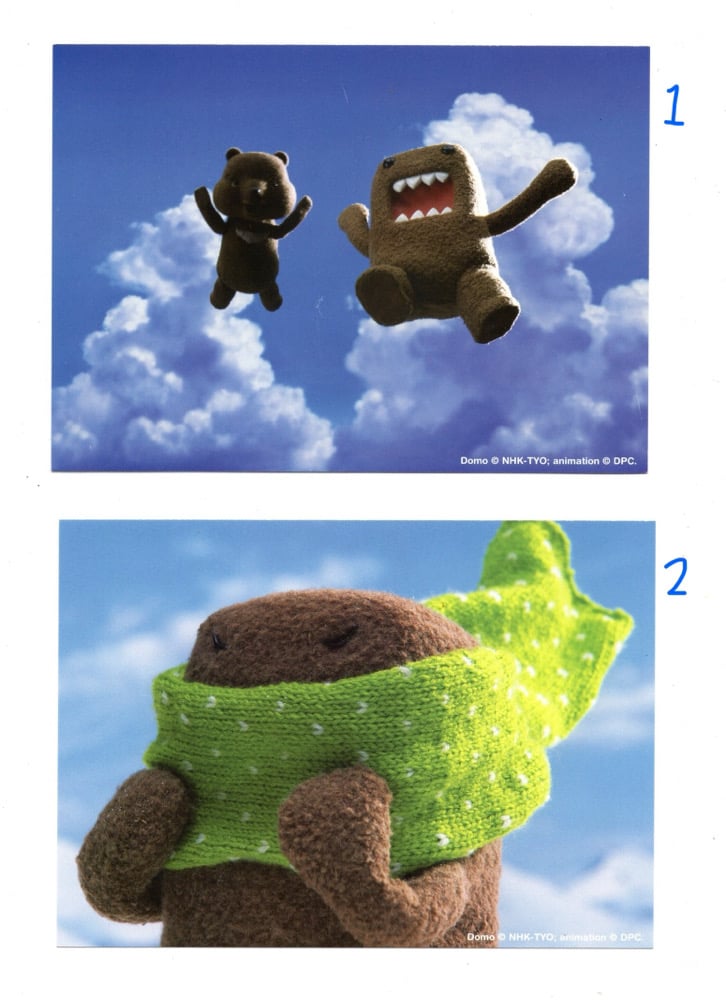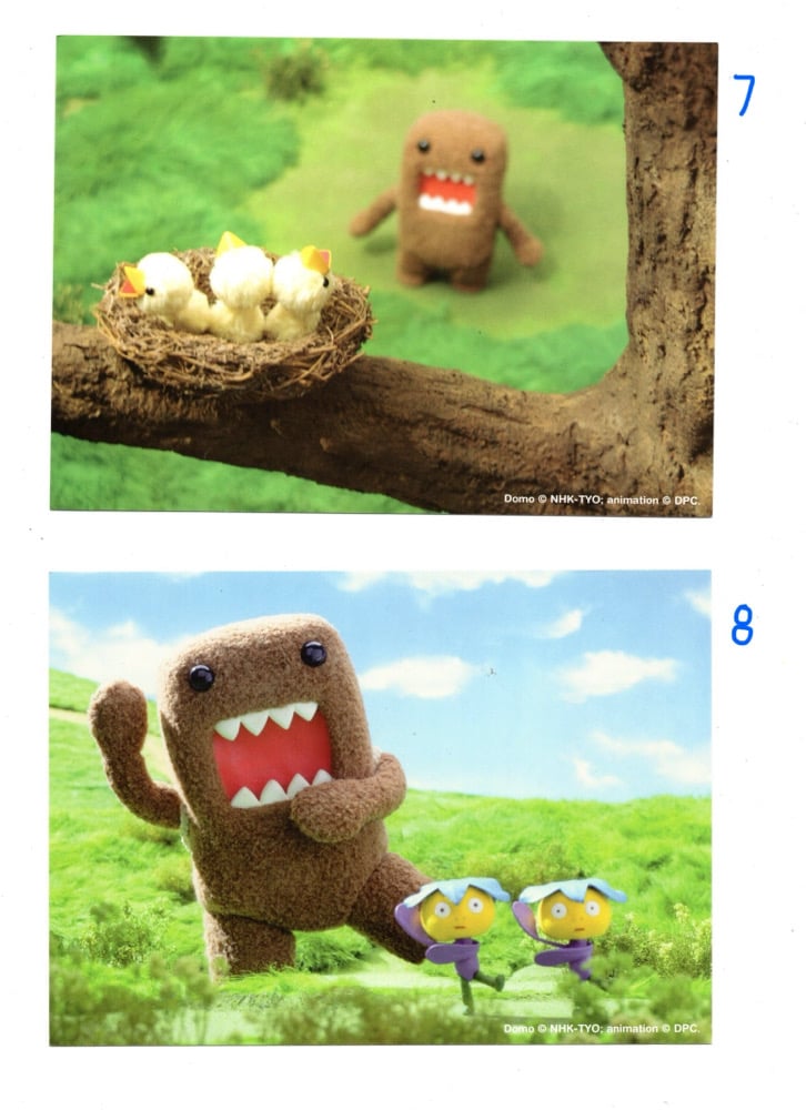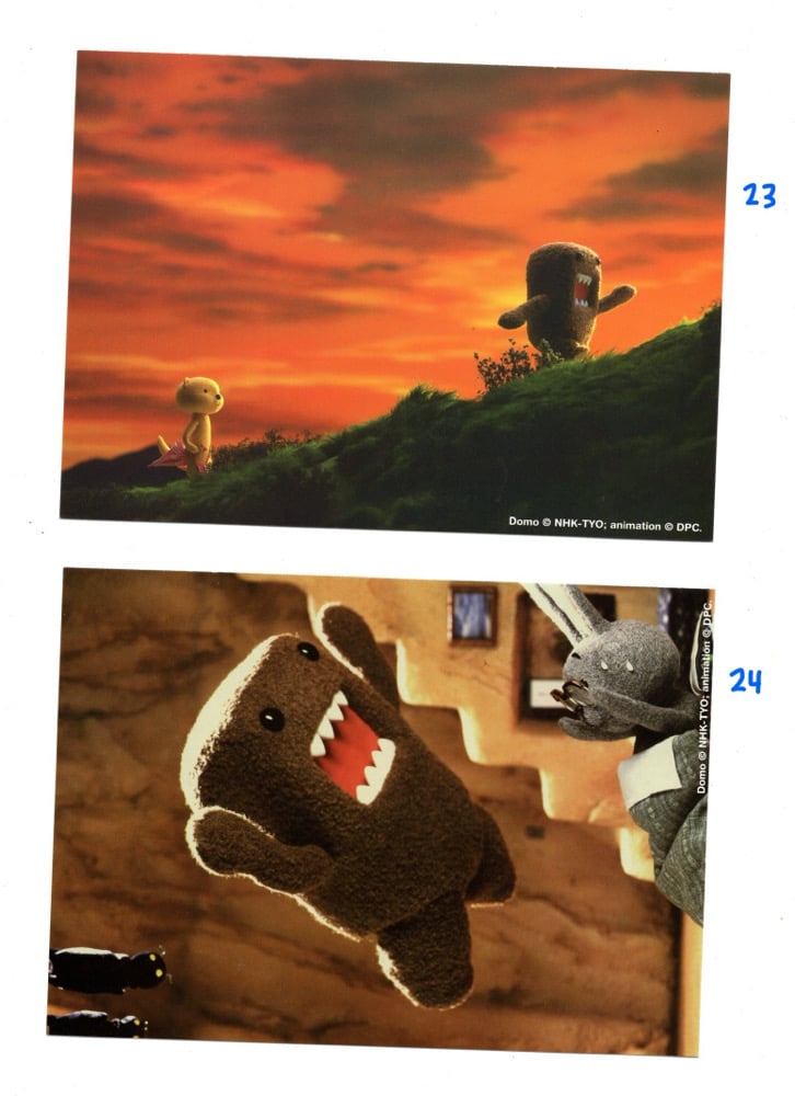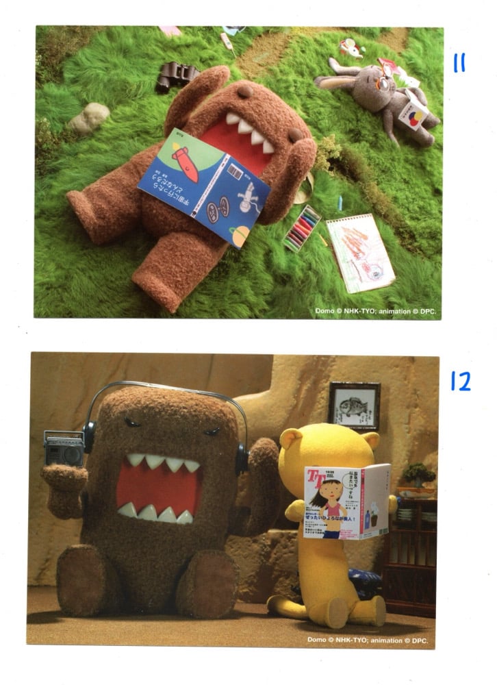 vintage domo postcards!! put one on your wall, mail it to a friend, glue it in a junk journal, stick it to your fridge so little domo can greet you every time you want a snack ^_^ 5 x 7 inches <3