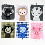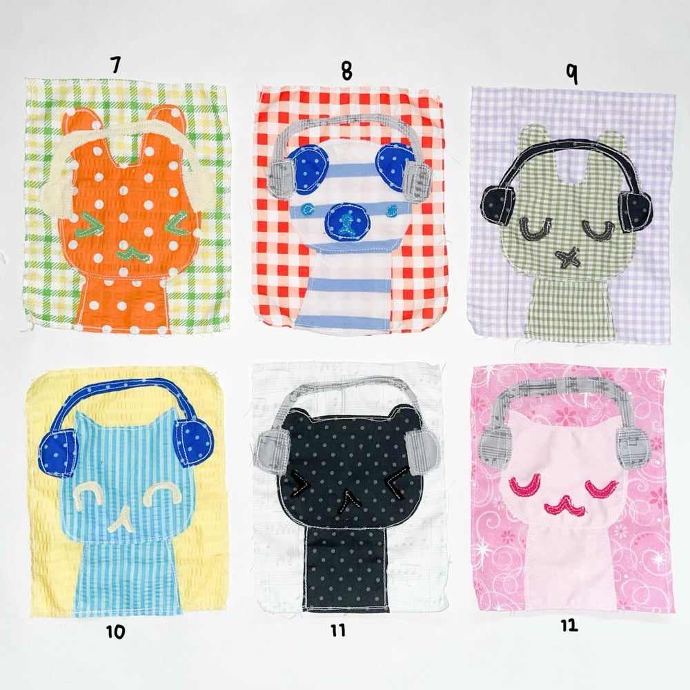 made with all secondhand fabric!! can be sewn onto bags + clothes + etc. or pinned on using safety pins :-)
