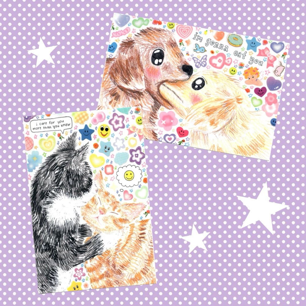 the puppy and kitty postcard sold together in a pair at a discounted price <3