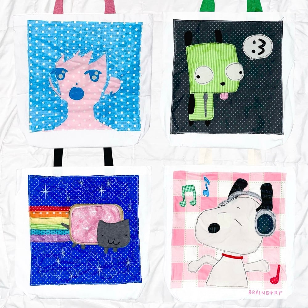 sewn on canvas tote bags <3